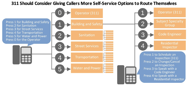 Focusing on Requests Where 311 Can Deliver the Most Value – 311 is best suited for processing high volume, low complexity service requests, especially through its mobile app. ITA and other departments should develop a migration plan and customer service strategy to move more routine requests to 311 for processing, create even more types of service requests that are currently not available through 311, and divert callers away from 311 for services that it is not equipped to handle. In particular, expanding the number of services available through 311 would empower Angelenos with more convenient self-service options.