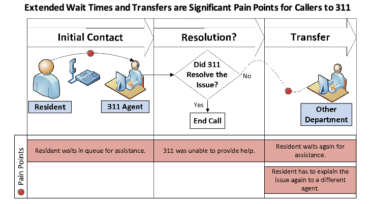 Before embarking on its implementation of the 311 call center, City policymakers were warned about the “apathy and opposition” that 311 would face from other departments because of its customer-centric approach to managing service requests. Overcoming that resistance to change then, as now, requires City policymakers to weigh in on a revised citywide customer contact strategy.