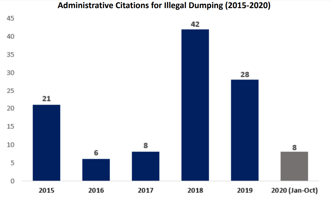 - Consider increasing fines for those caught dumping illegally and boost oversight of commercial trash customers and construction projects to ensure proper trash disposal.