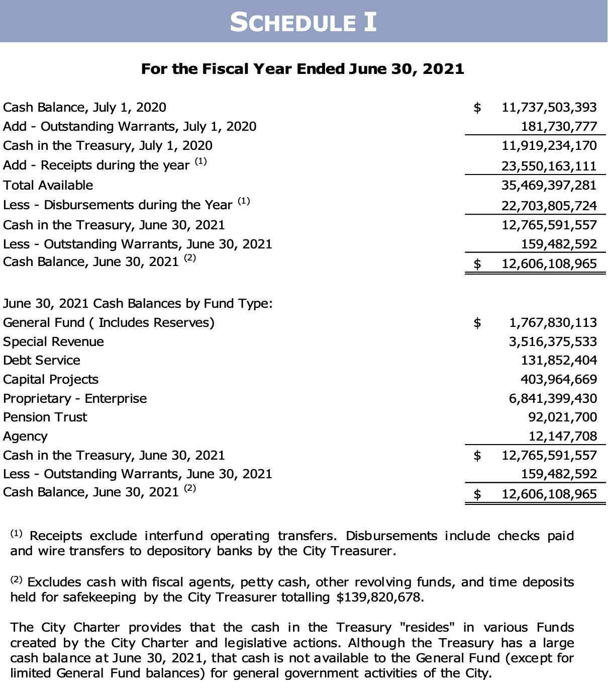 As of June 30, 2021, after closing the City’s General Ledger, the recorded Reserve Fund balance was $647.0 million. This was $137.2 million more than the amount anticipated in the 2021-22 Budget. The Reserve Fund cash balance is adjusted by the following factors to arrive at the year-end balance: