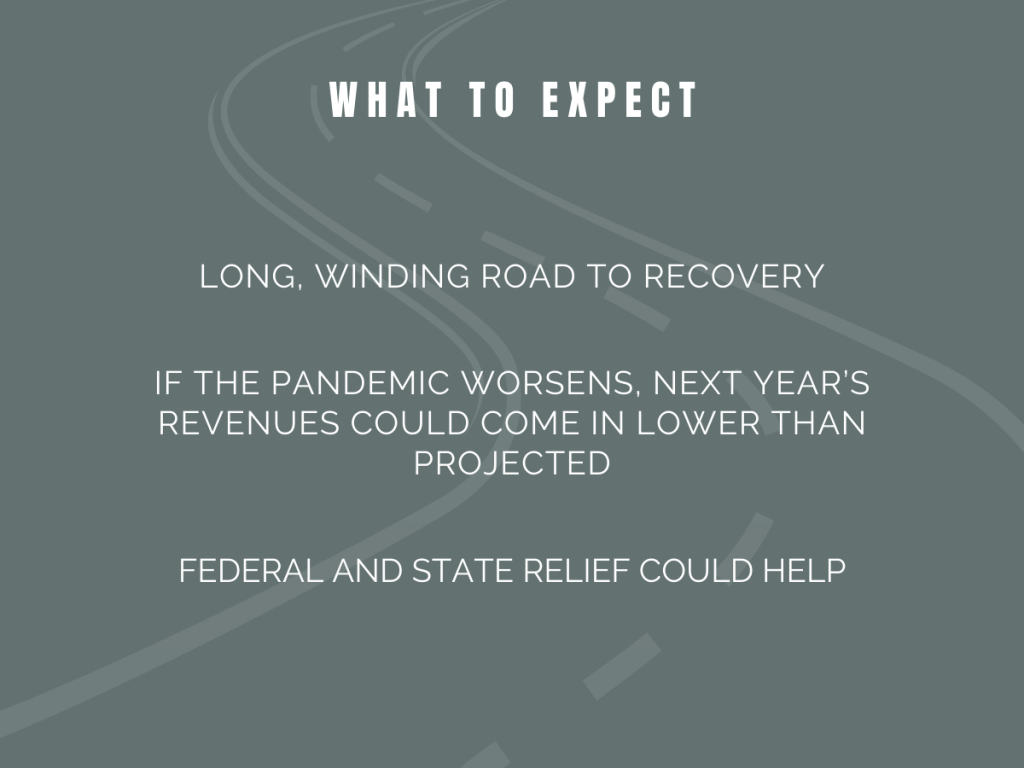 Even with external funding the end of this fiscal year will be tough and troubling for the City’s finances, making the coming budget process even more difficult than the last. Despite the very real prospect of recovery in FY22, no promises can be made at this time, only projections based on the economic and public health information at the City’s disposal. For this reason, the City must go into this budget season with a careful, deliberate eye on maintaining services to the extent possible during this trying time.